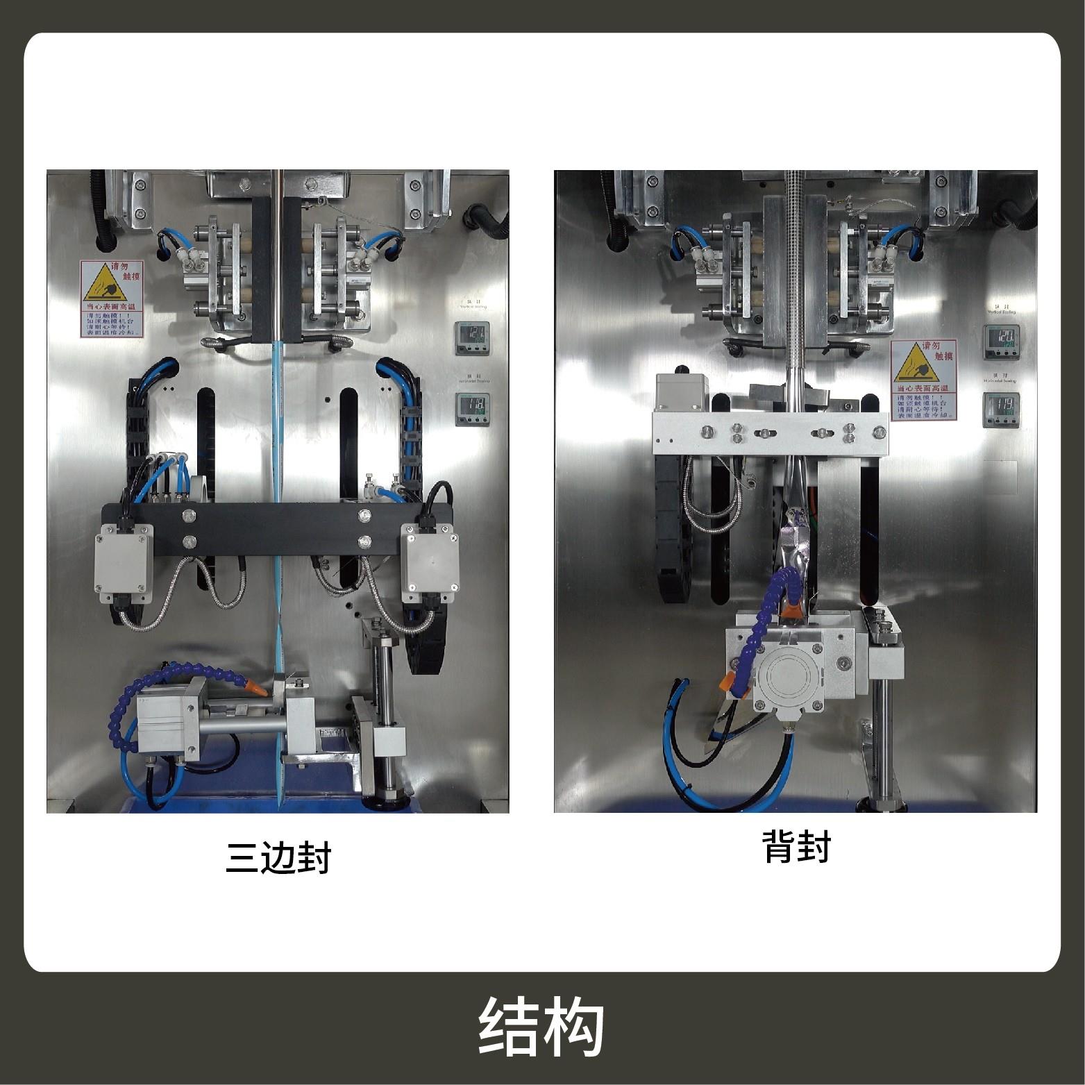 3、觸摸屏操作,PLC 控制,驅(qū)動(dòng)步進(jìn)電機(jī)控制袋長(zhǎng),性能穩(wěn)定、調(diào)整方便、檢測(cè)準(zhǔn)確。智能式溫控儀,PID調(diào)節(jié),保證將溫度的誤差范圍控制在1℃以內(nèi)。