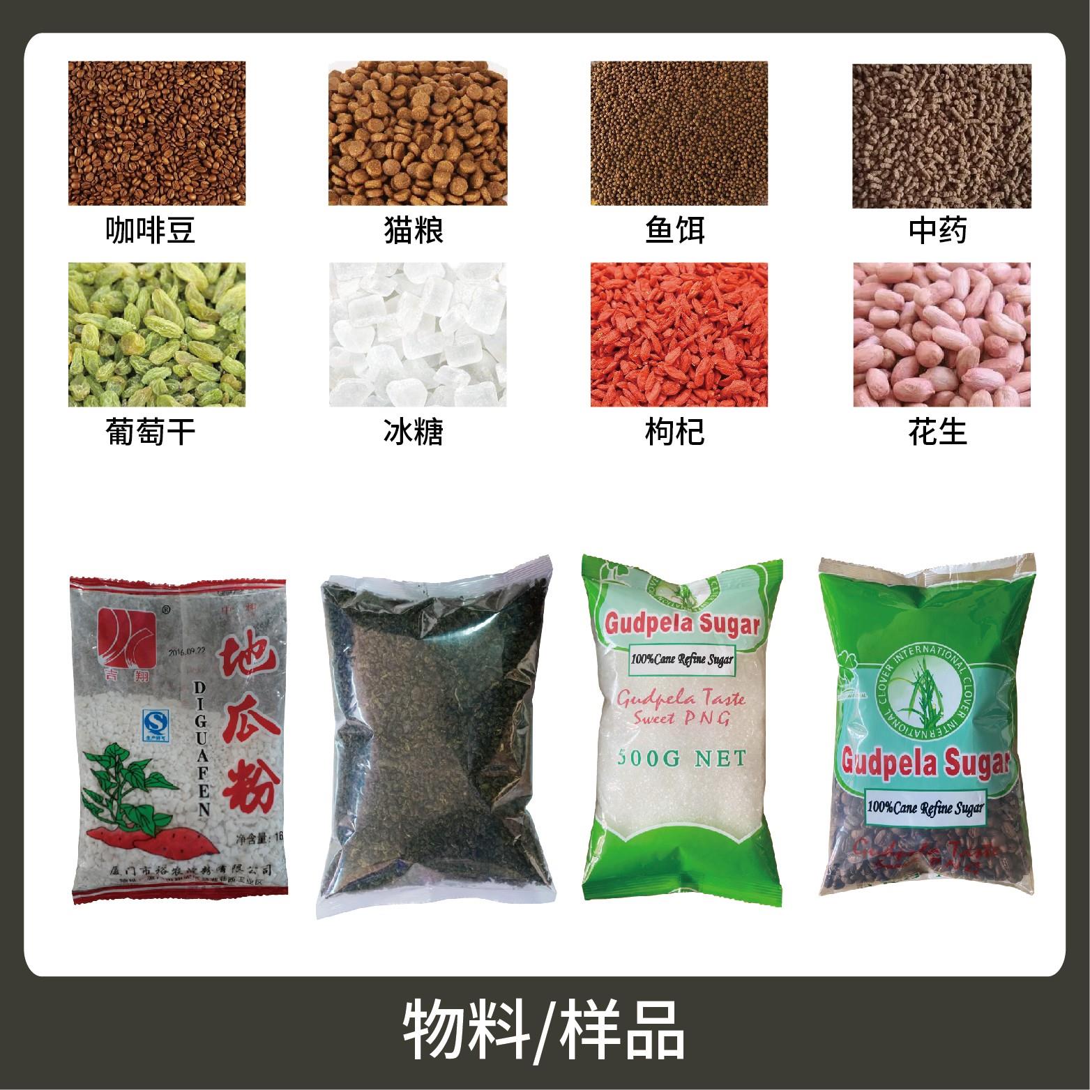 適用于食品、醫(yī)藥、化工、化妝品行業(yè)中顆粒、粉劑、液體、醬料等物品的大克重計(jì)量包裝,如:干果、辣椒面、咖啡粉、谷物粉、辣椒油、牛奶、冰袋等。